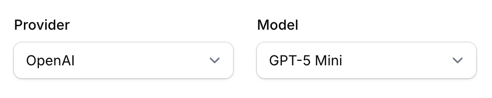 Here's a typical dependent select setup — a provider dropdown controls which models appear: